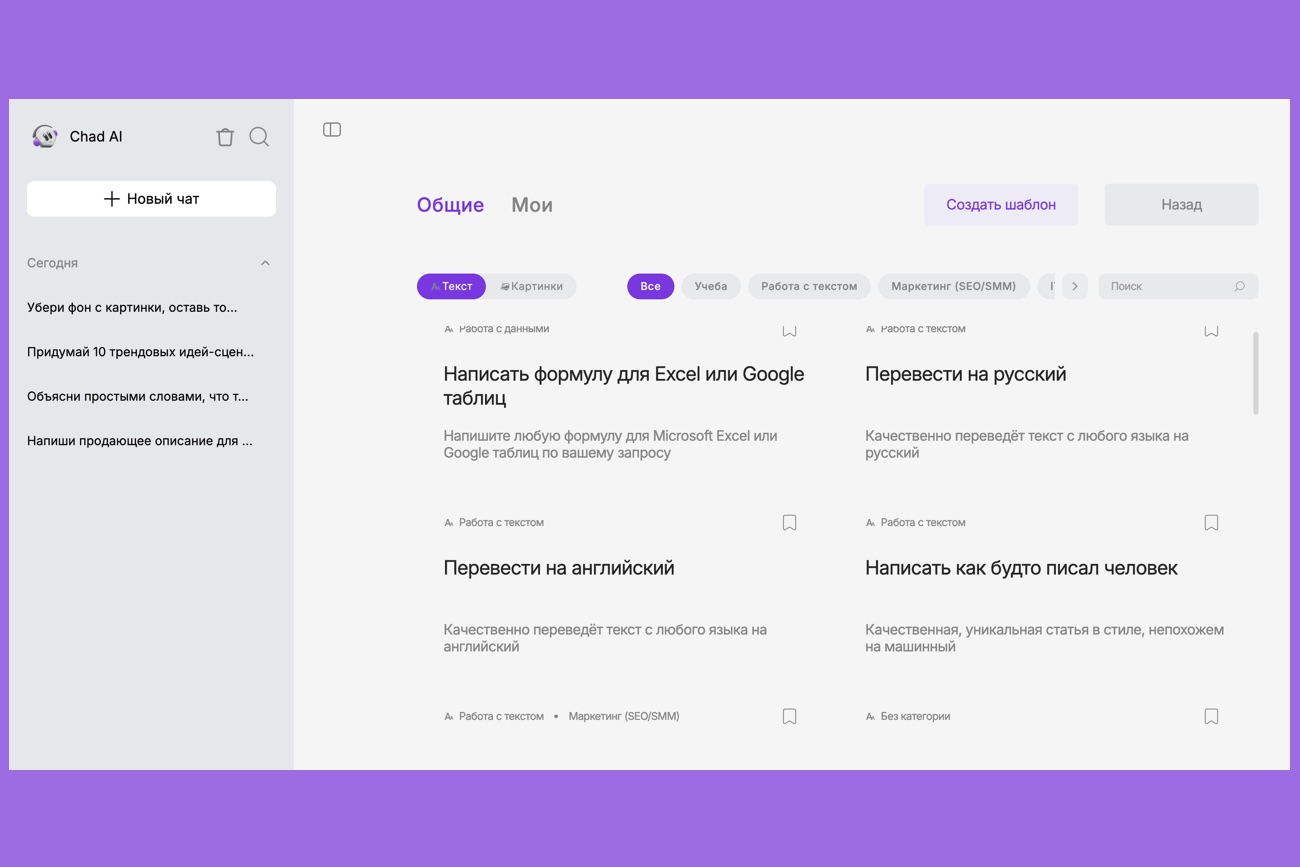 Если не знаете, с чего начать, в WebGPT есть библиотека промптов — типовых описаний задачи для нейросети. Достаточно выбрать нужный шаблон и подогнать его под себя.