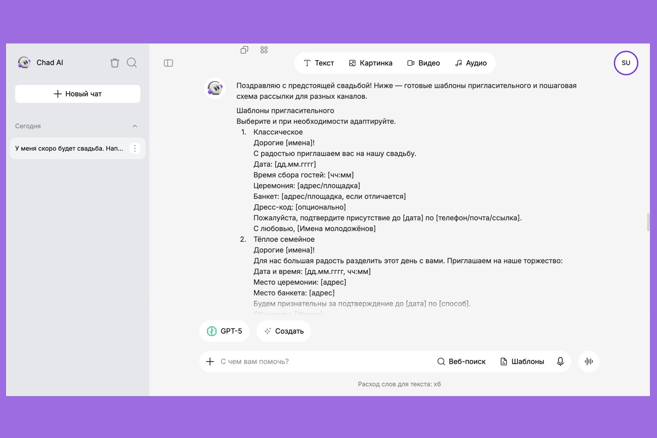 Вот что ответит GPT-5, если попросить составить пригласительные на свадьбу.