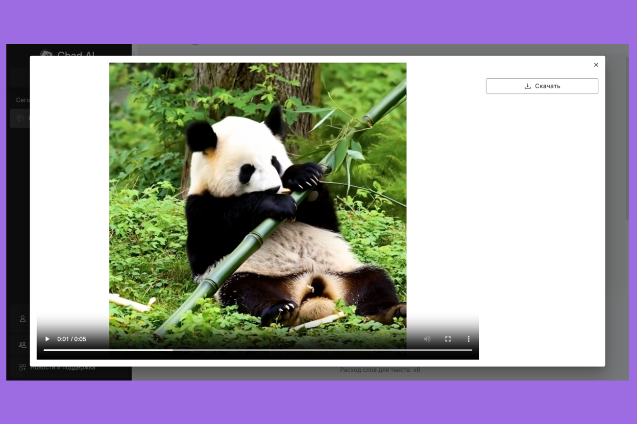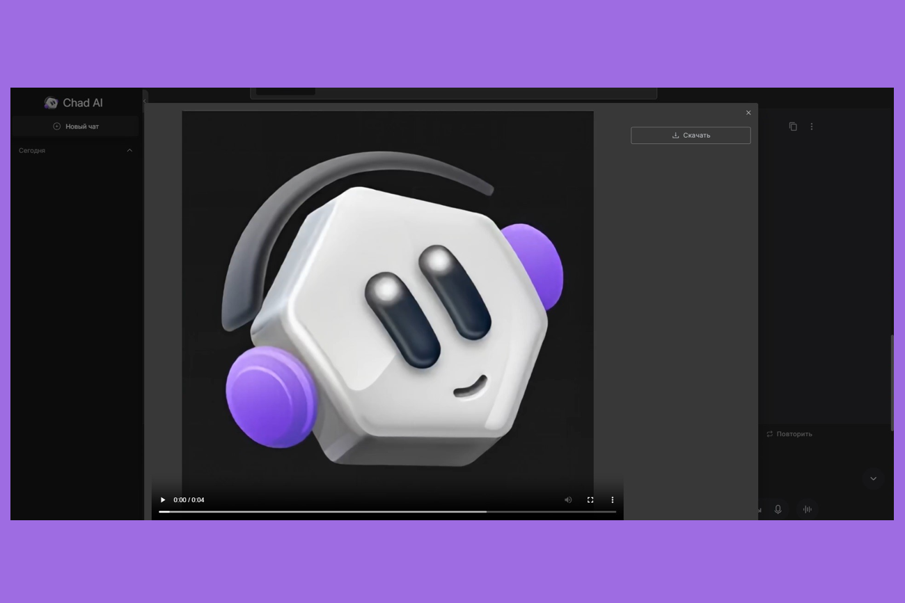 После генерации видео отправляется в чат. Его можно посмотреть и скачать.
