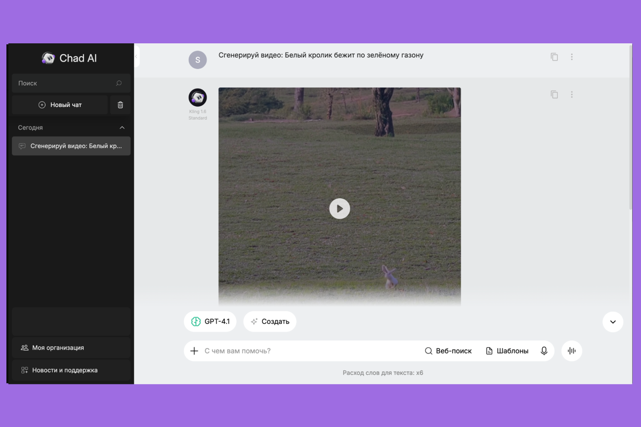 В WebGPT можно создавать короткие видео с помощью Kling. Здесь доступны модели Kling 1.6 Standard и Kling 1.6 Pro. Когда ролик будет готов, появится кнопка для скачивания видеофайла.