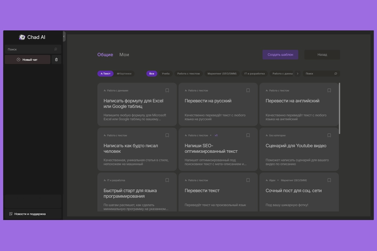 Чтобы не мучиться с формулировкой, можно воспользоваться шаблонами промптов. Это готовые запросы, которые уже настроены под разные задачи. Достаточно выбрать подходящий — и вы сразу получите результат. Для новичков это особенно полезно: вы видите, как правильно задавать вопросы, и постепенно учитесь формулировать свои.
