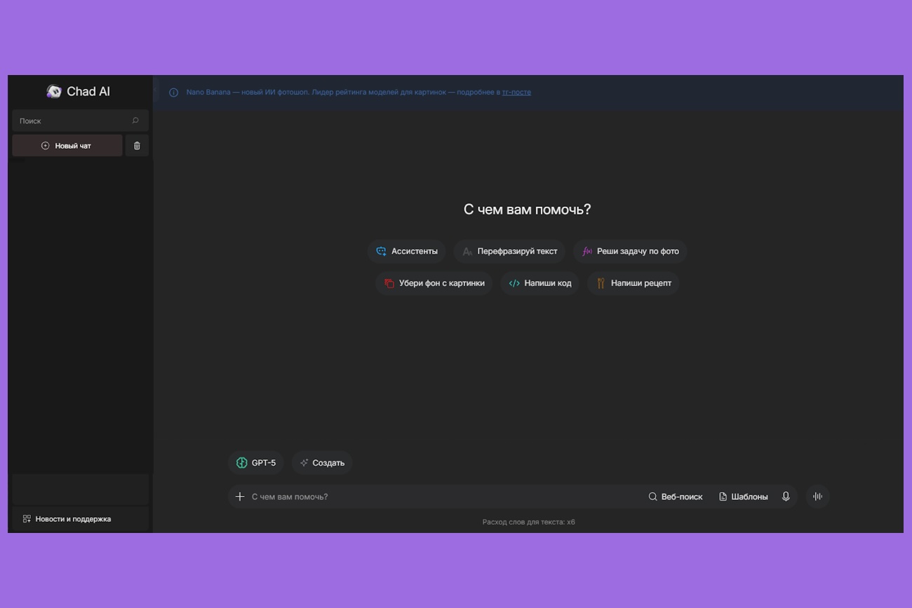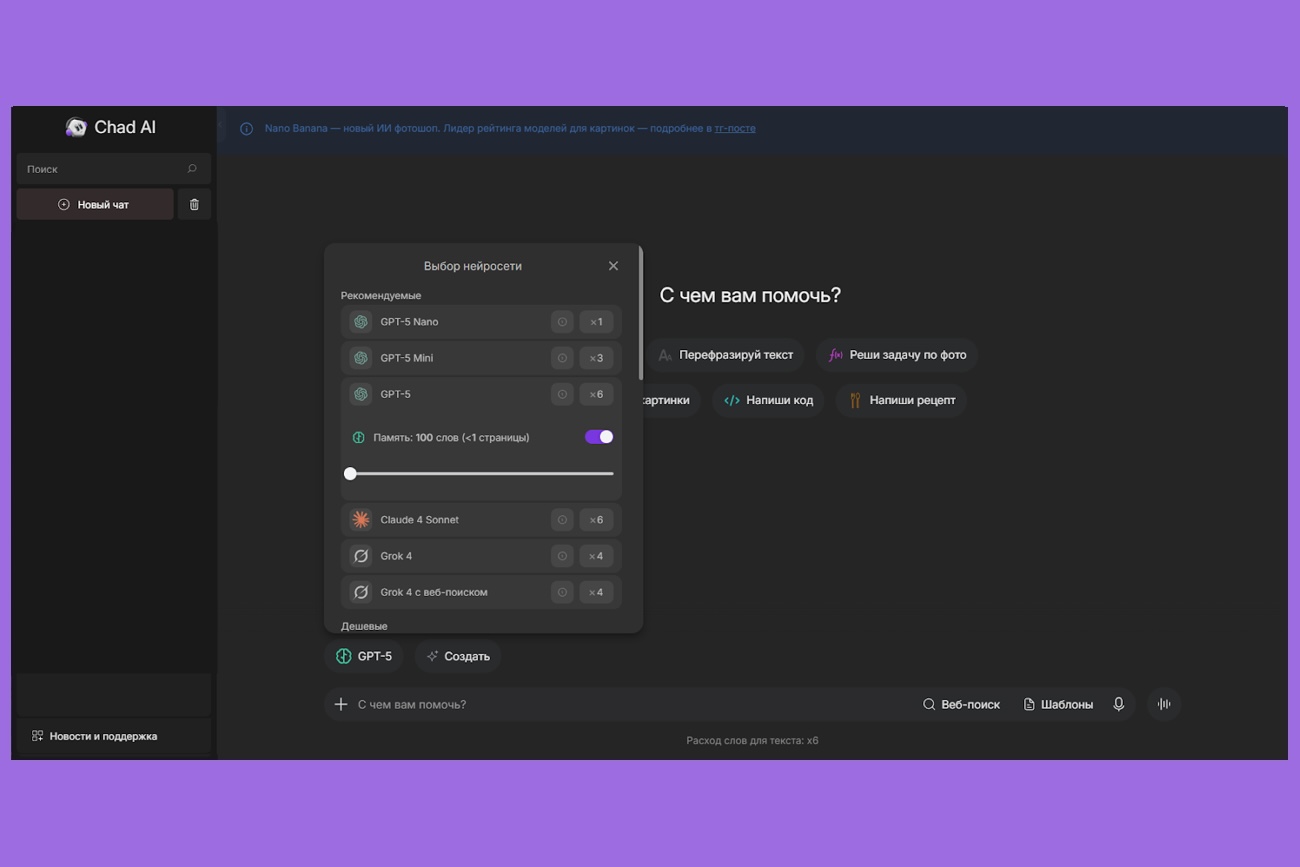 - Доступ к новым моделям, включая Gemini 2.5, GPT-5 Nano и GPT-5 на русском языке.