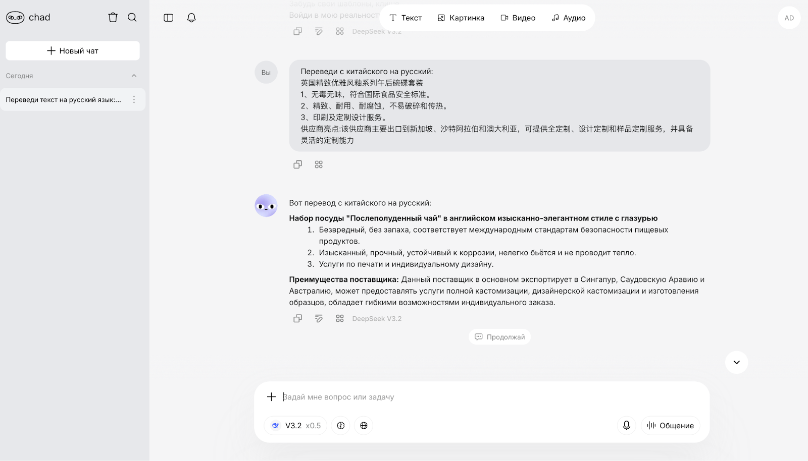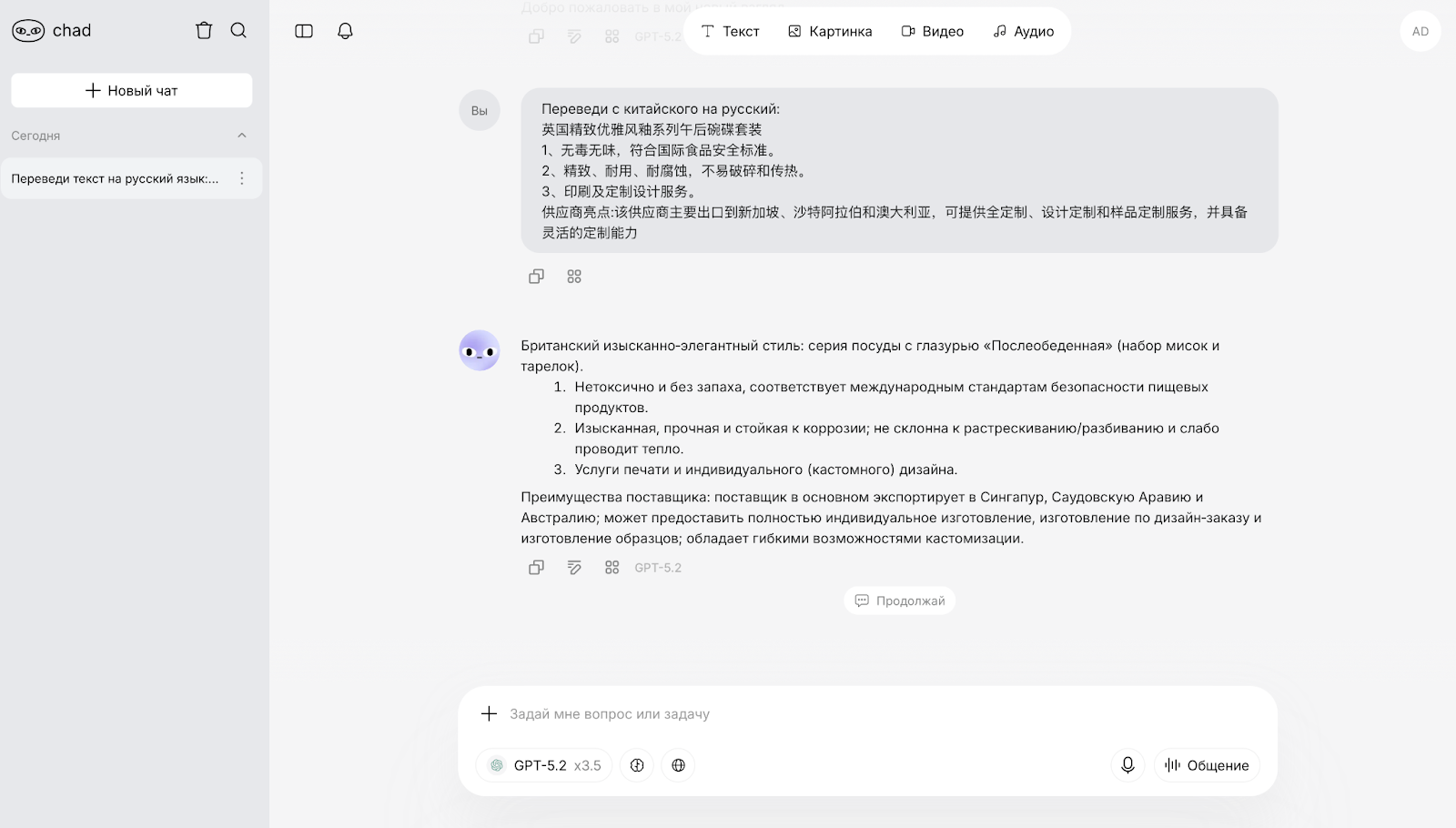 Универсальный переводчик известен тем, что понимает юмор, сленг и культурные отсылки. Нейросеть быстро адаптируется под специфический тон — от разговорного до официального, — и хорошо работает с большими объемами текста. Пользователи утверждают, что это удобный инструмент для повседневных дел, блогов и онлайн-контента.
