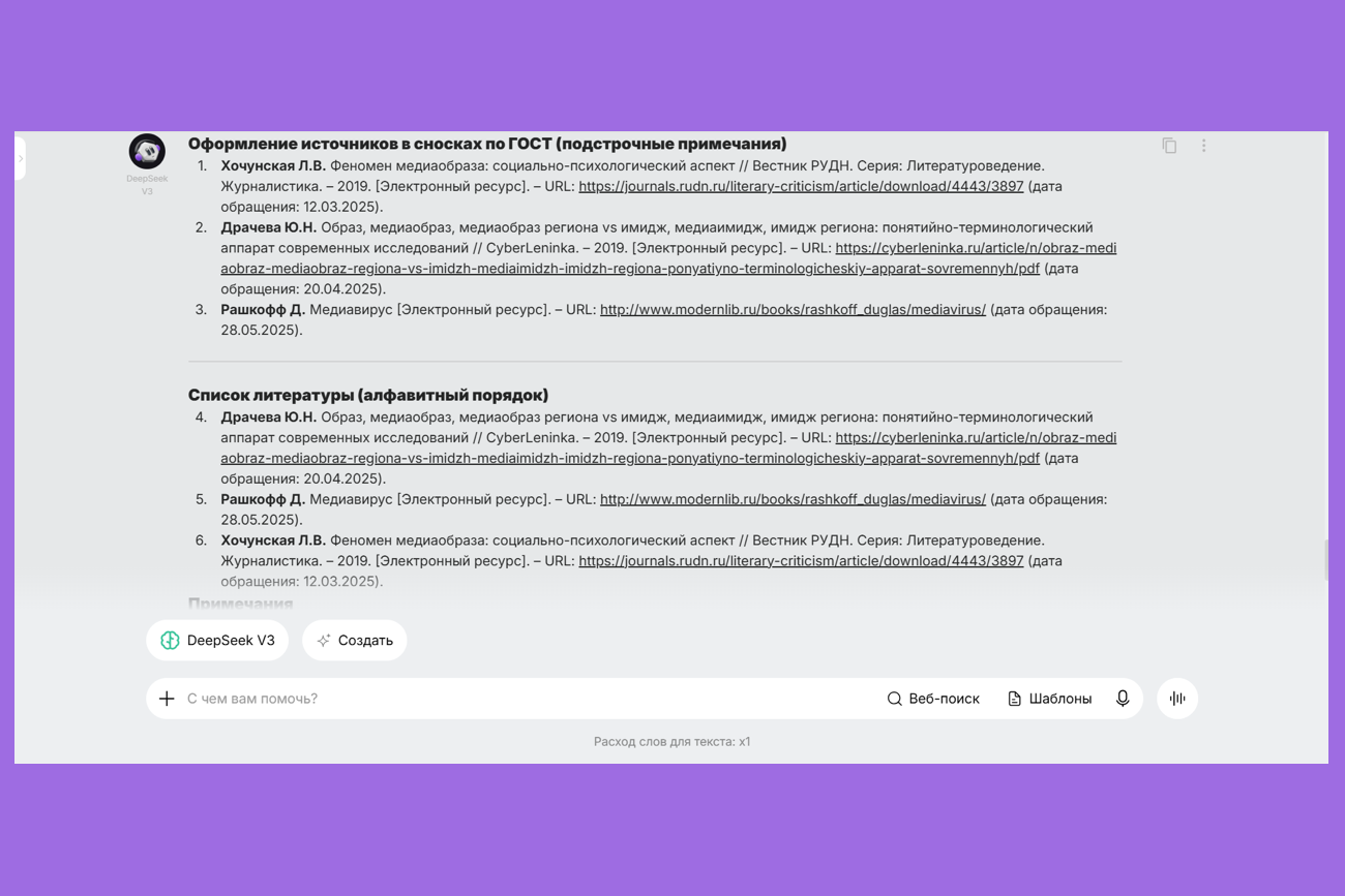 DeepSeek — оформление по ГОСТу