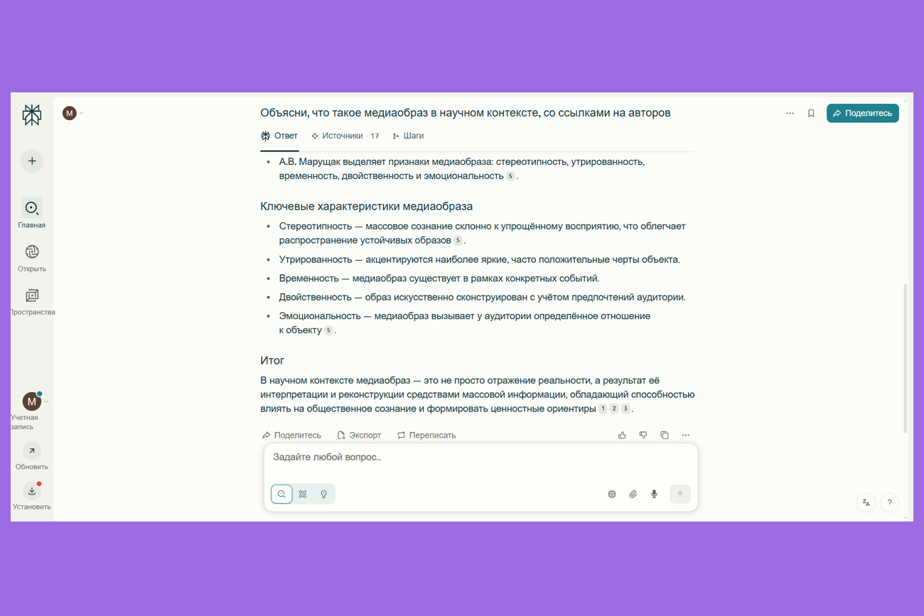 Минусы: нейросеть иногда выдаёт неточные или устаревшие данные, особенно по узкопрофильным темам.
