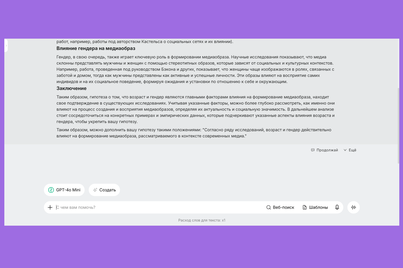 Плюсы: удобен для гуманитарных и технических специальностей, хорошо справляется с чётким промптом.