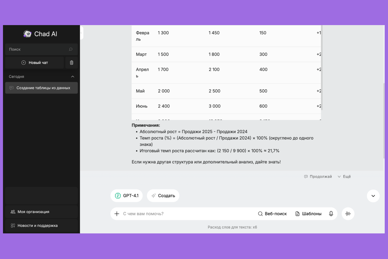 Далее нейросеть заполняет таблицу данными, соответствующими теме и структуре. Это могут быть как реальные данные, так и примеры для демонстрации. На этом этапе важно указать, хотите ли вы получить конкретные значения или просто шаблон с примерами.