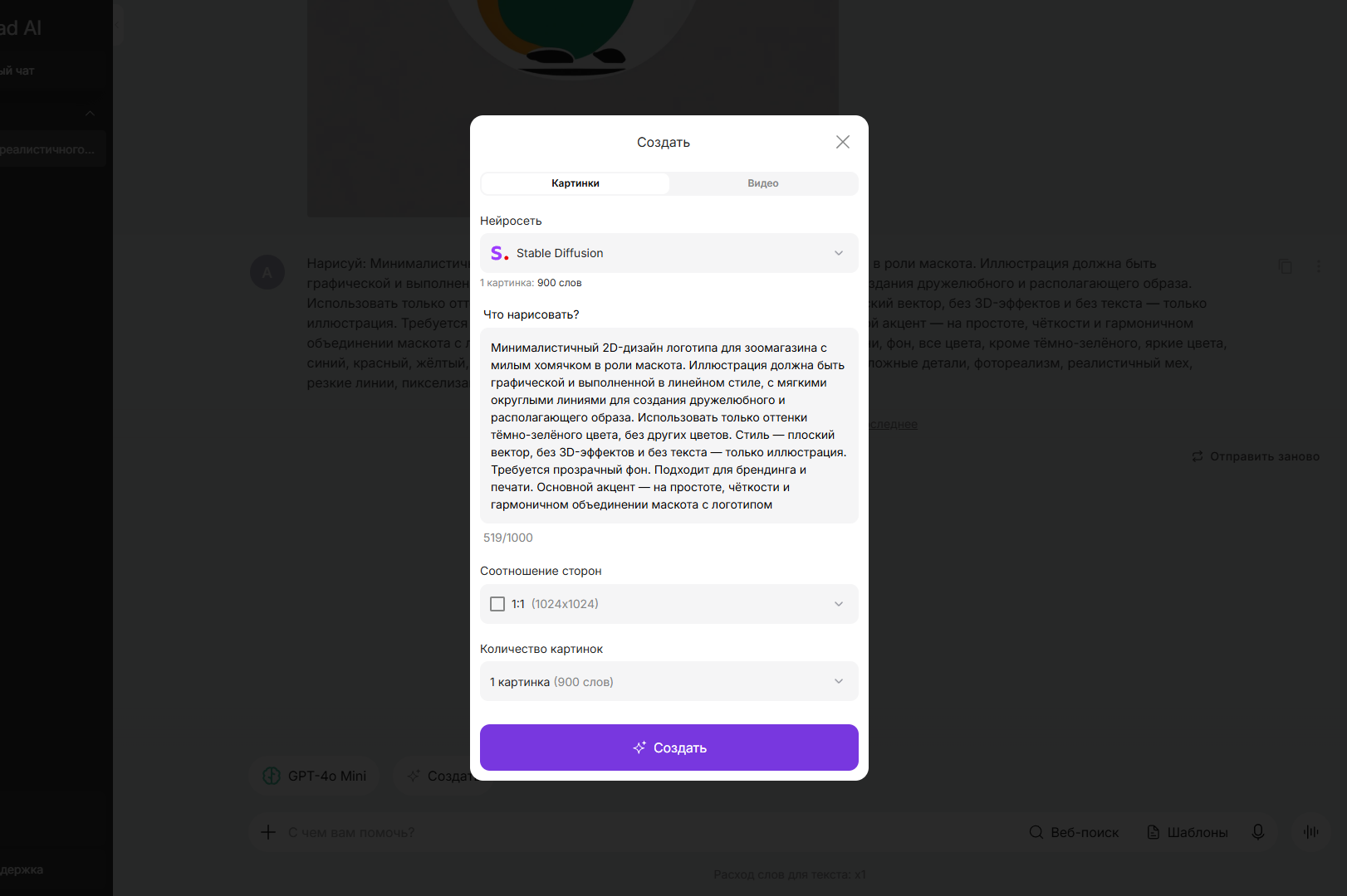 Опробуем промпт с помощью WebGPT. В качестве модели для реализации нашей задачи выберем Stable Diffusion.