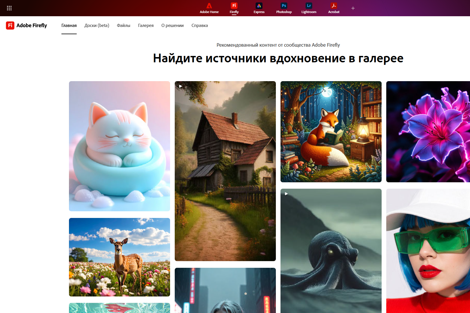 Adobe Firefly также позволяет генерировать видео, создавать звуковые дорожки и аудиоэффекты.