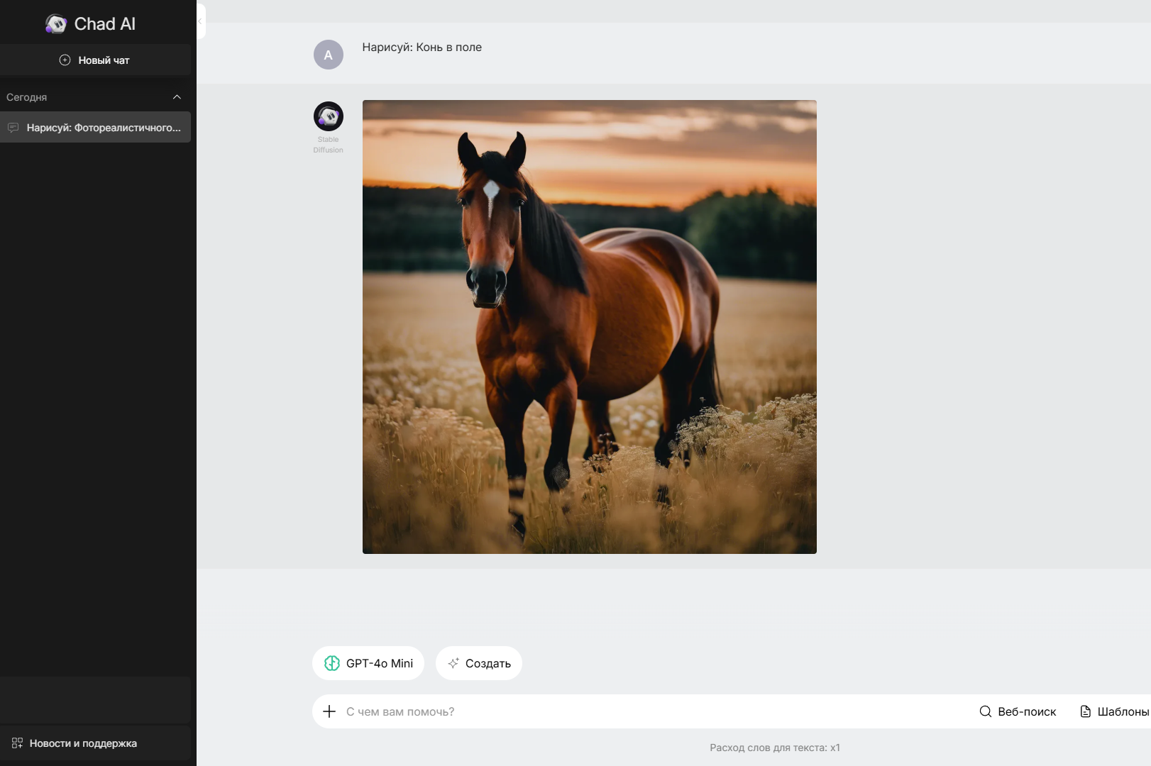 Стоимость: В интернете много сайтов и ботов на основе этой модели. Стабильный доступ к генерациям обеспечивает российский сервис WebGPT. Здесь Stable Diffusion можно использовать вместе с другими популярными нейросетями.
