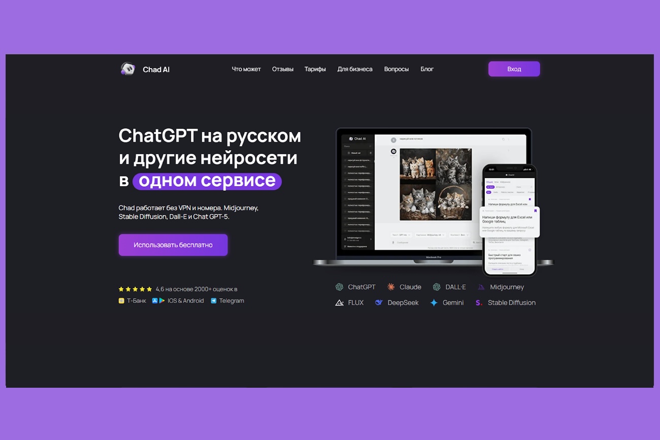 Более 100 нейросетей в одном окне — ChatGPT, Claude, Gemini и другие. Без VPN и зарубежных карт.